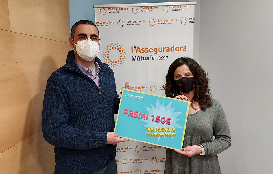 El premi d'un val de compra de TerrassaCentre per import de 150€, ha estat lliurat per Esther Joaquim, Executiva Comercial de l'Asseguradora.