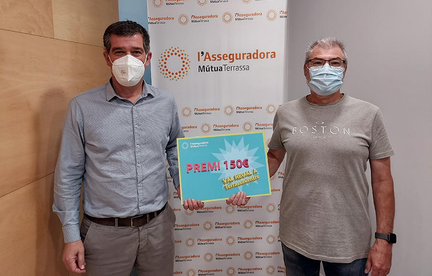 El premi d'un val de compra de TerrassaCentre per import de 150€, ha estat lliurat per Sebastià Broto, Director Comercial de l'Asseguradora.